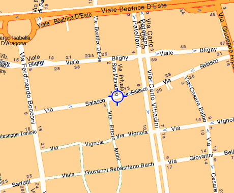 Second, you can take bus number 73 (bus towards Piazza San Babila) to Piazza Cinque Giornate. The bus stop where you leave bus 73 is at the corner where Corso Ventidue Marzo starts. Then, you will have to walk to the corner (at the same Piazza Cinque Giornate) where Viale Premuda starts. At that corner you take tram number 9 to Viale Bligny.